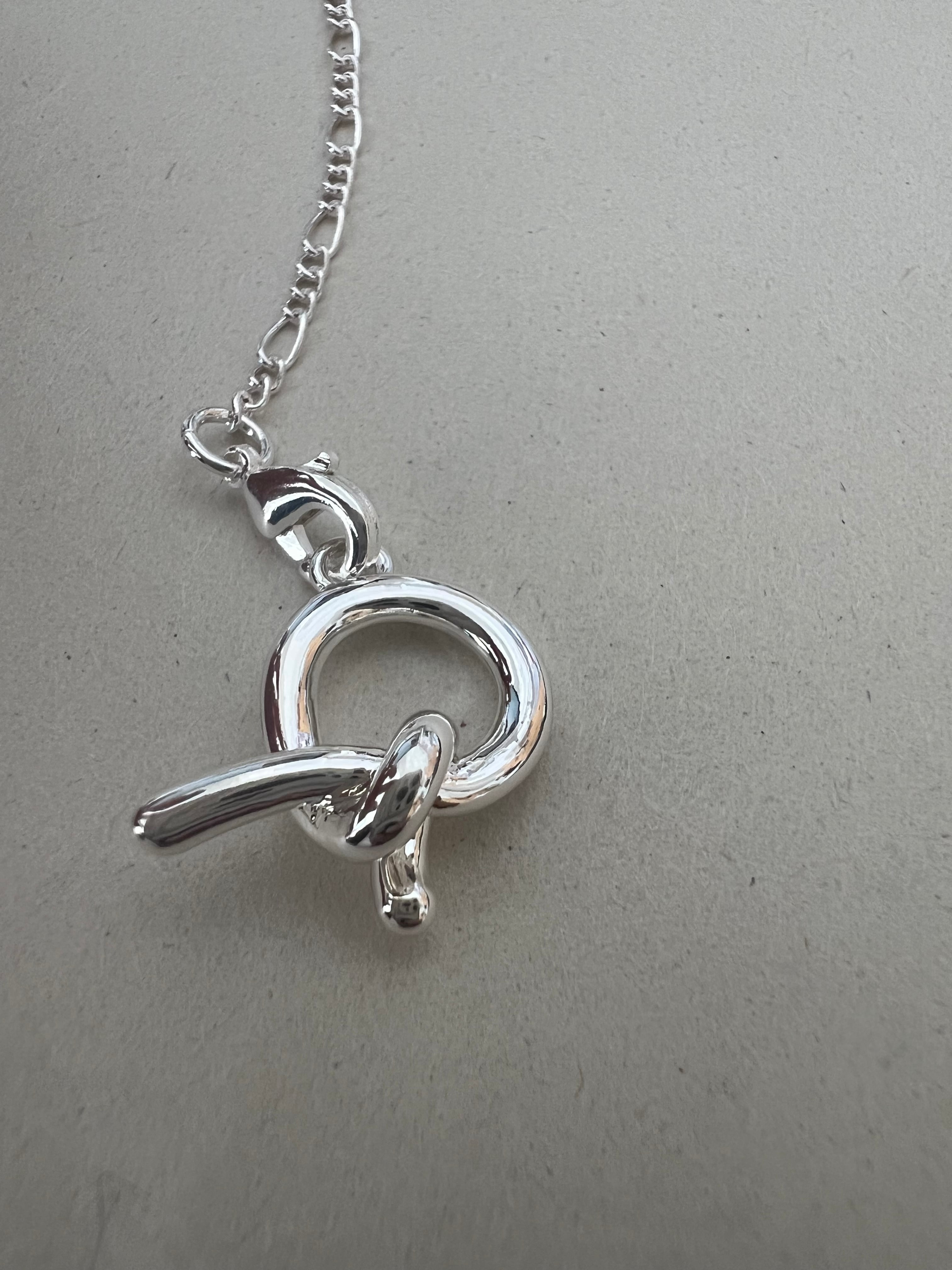 繊細なチェーンと存在感のあるノットが絶妙なバランスで、抜け感と個性を演出します。