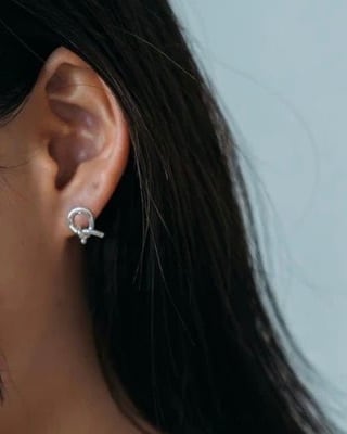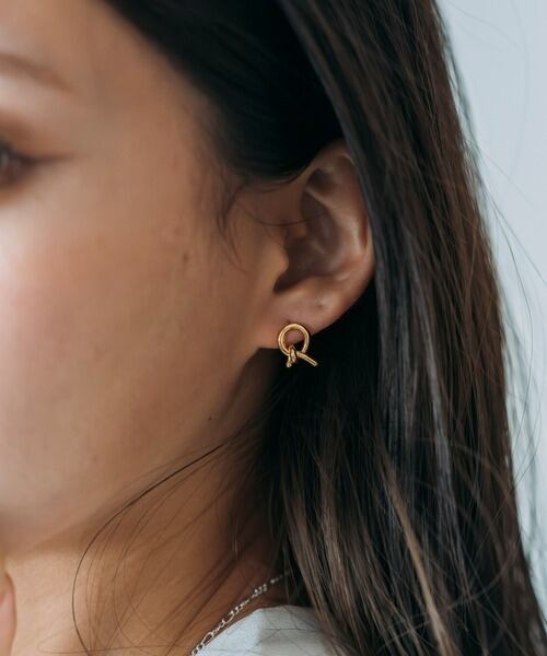 ミニマルで洗練された印象を放つ、結び目モチーフのピアス。