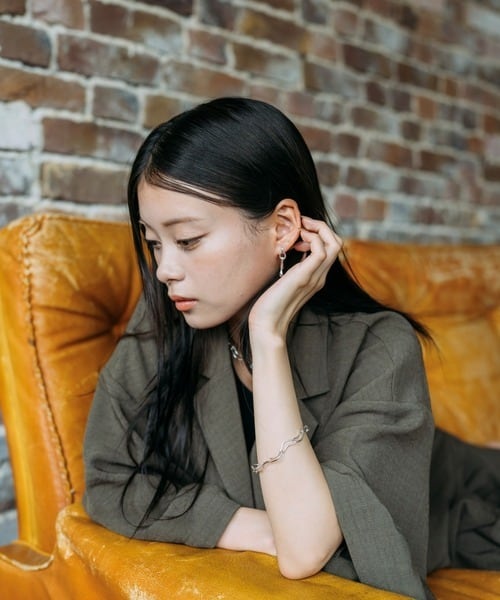 ピアスは、チェーンの一コマを取り入れたシンプルながら、動くたびに揺れるフォルムが印象的。