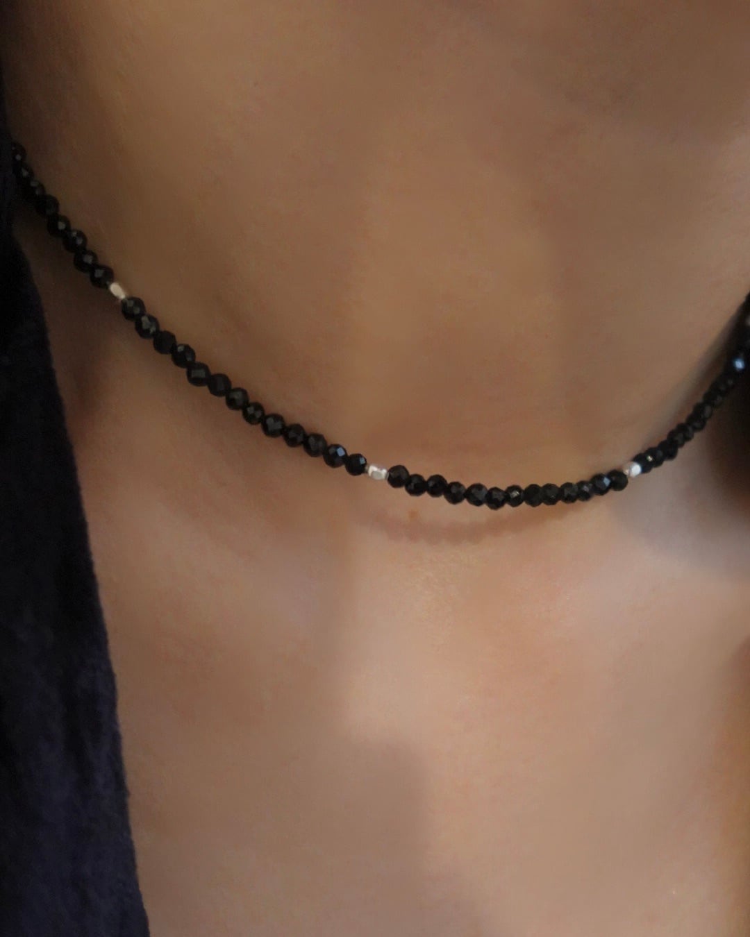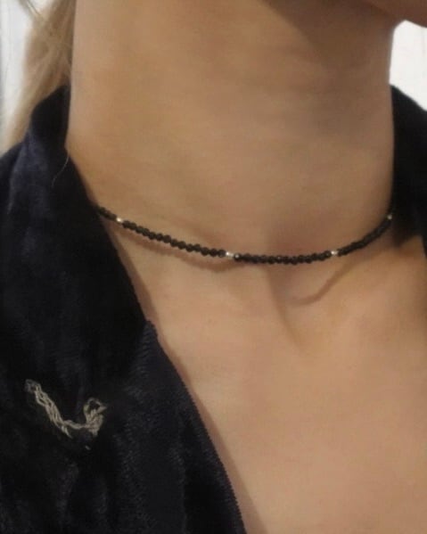 ブラックスピネルの輝きを引き立てる上品なアクセントとして