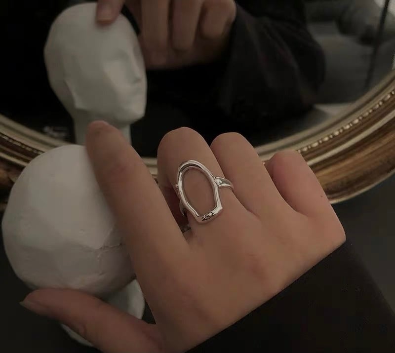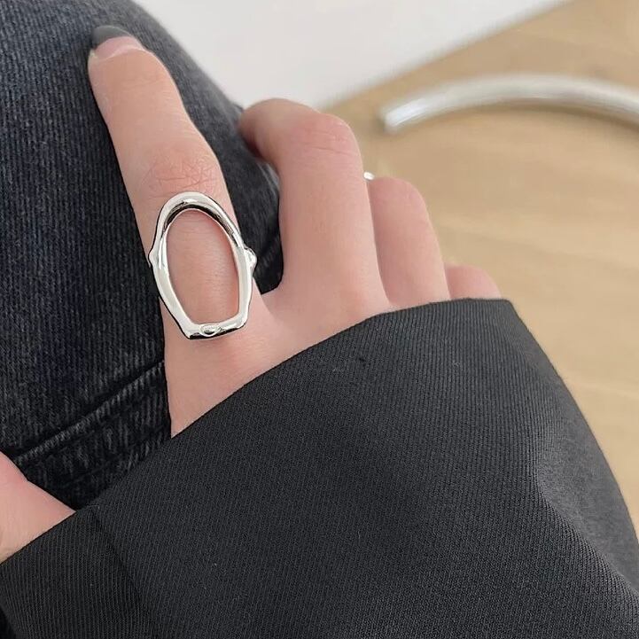 変形したオーバルデザインが特徴的な存在感たっぷりリング。