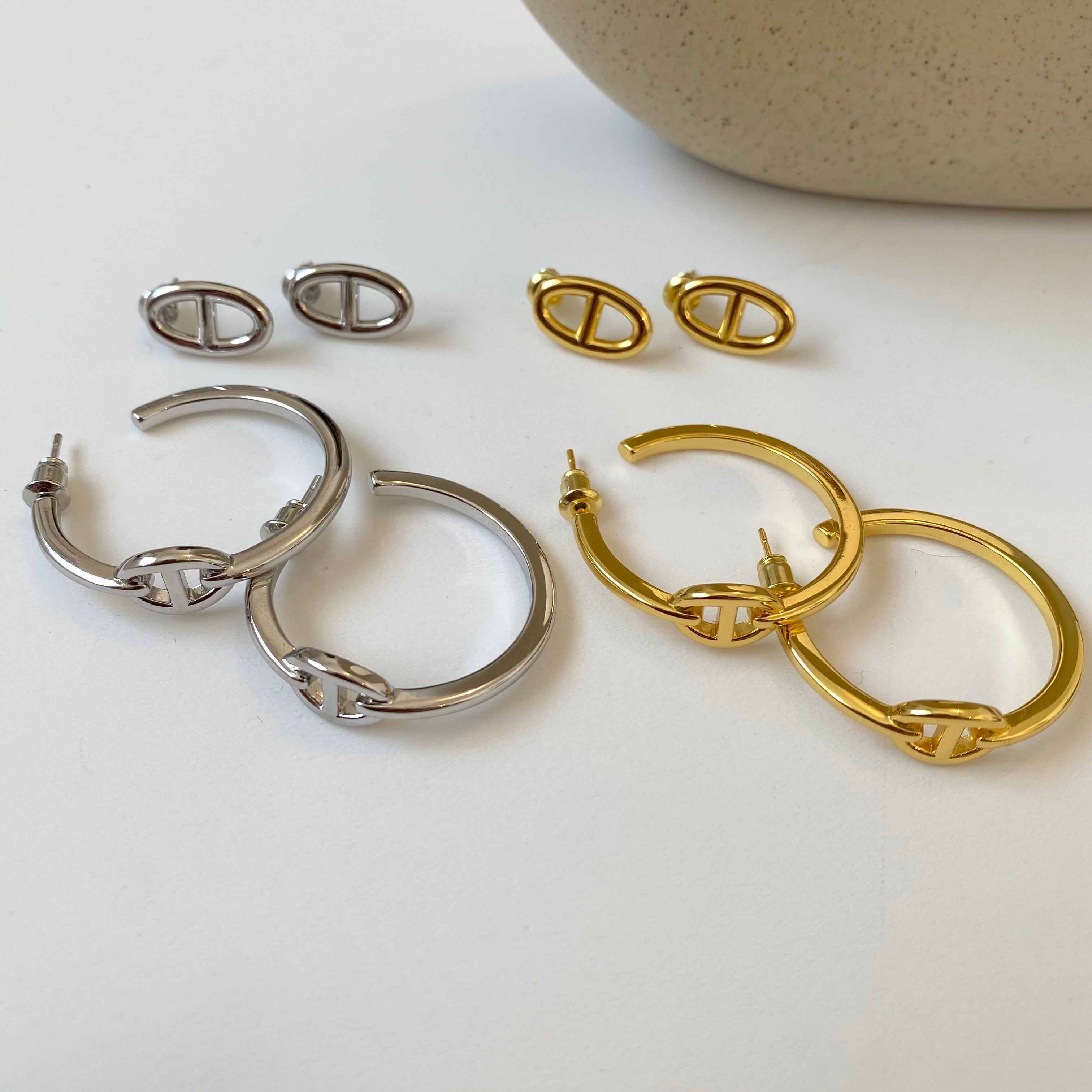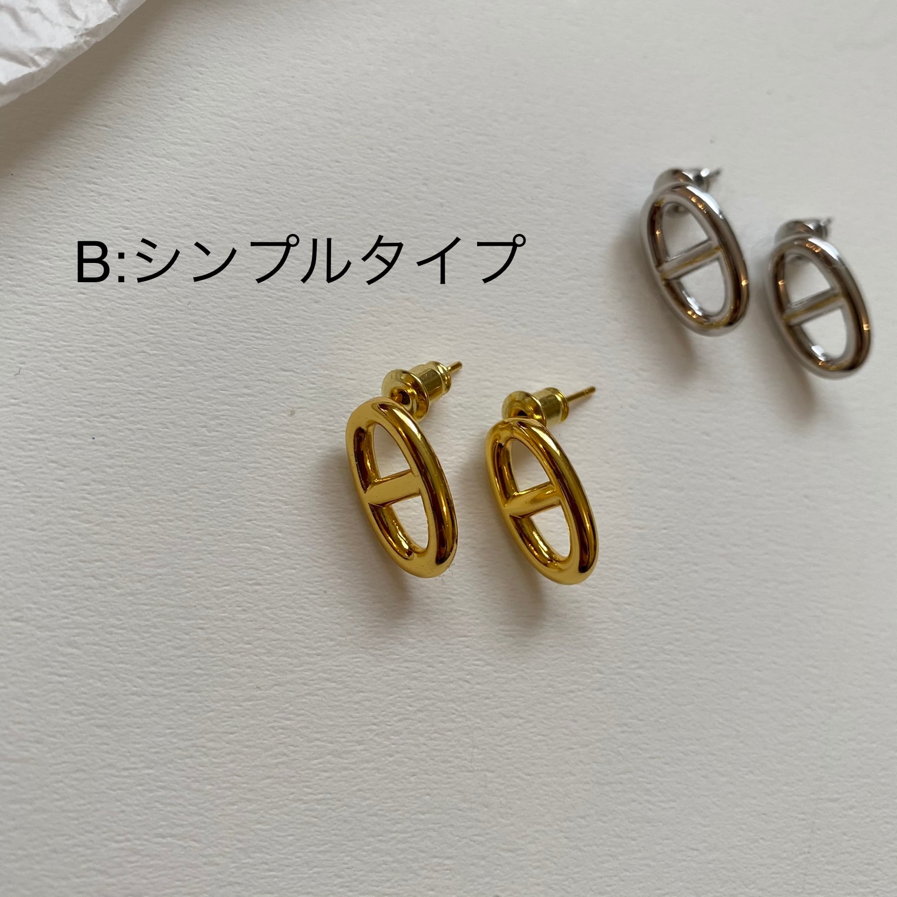 フープタイプとシンプルタイプの二種類のピアスになります。