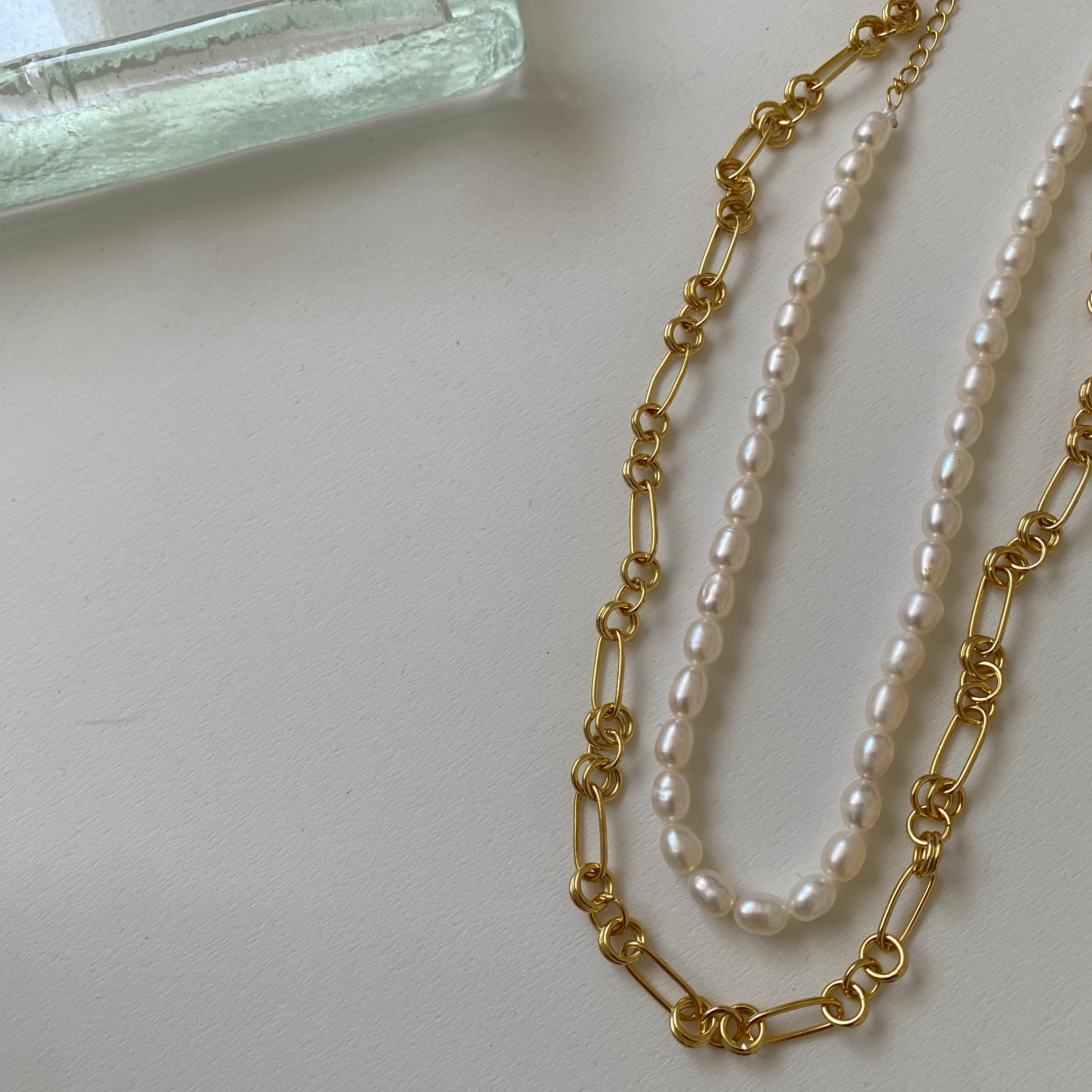 今年大人気のパールネックレスとの重ね付けも◎