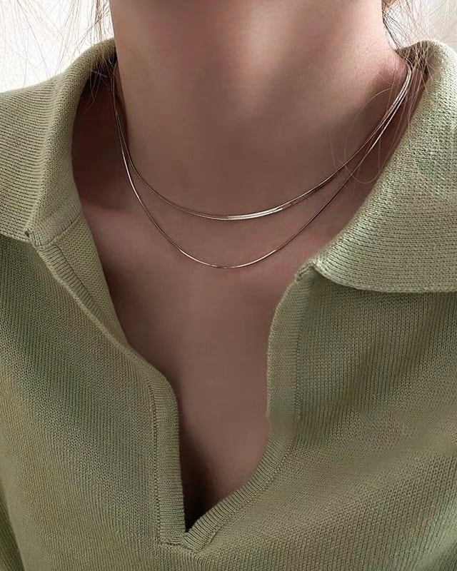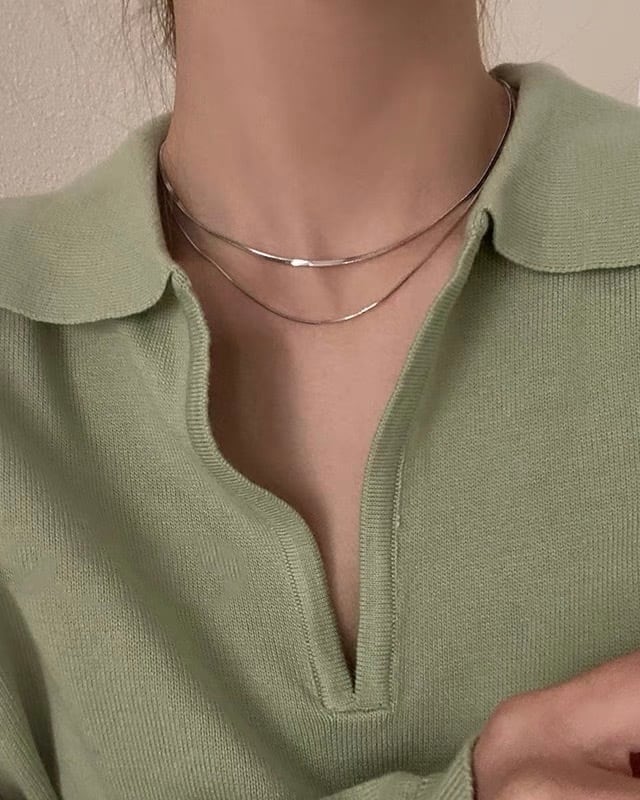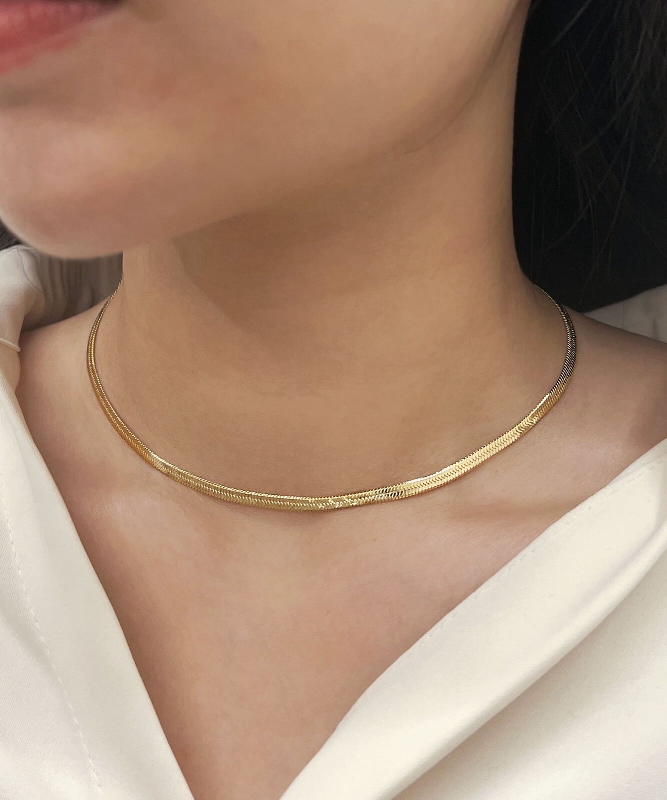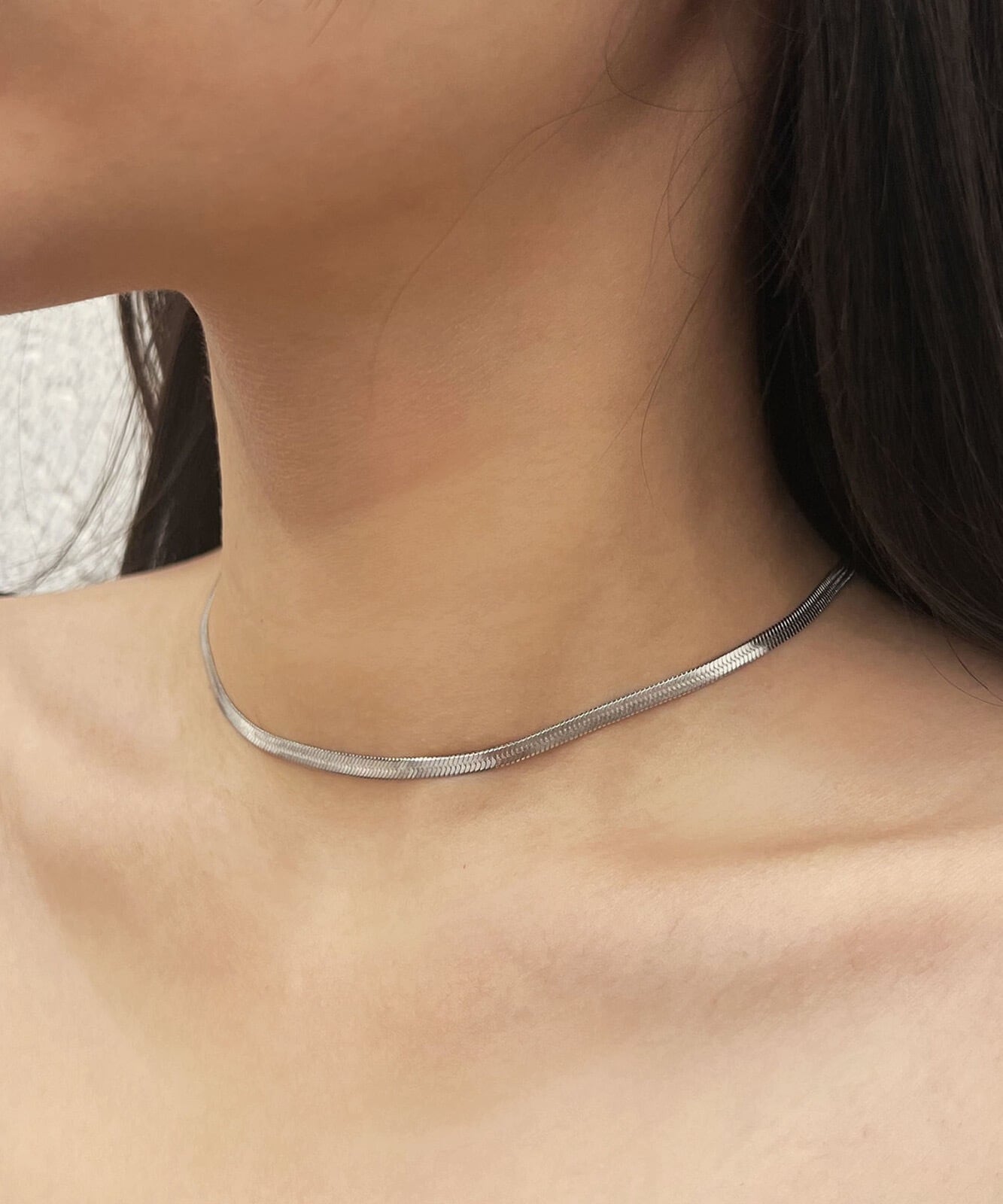 3mm幅で太すぎず細すぎず、ネックラインに添うようデザインされた絶妙な長さが、