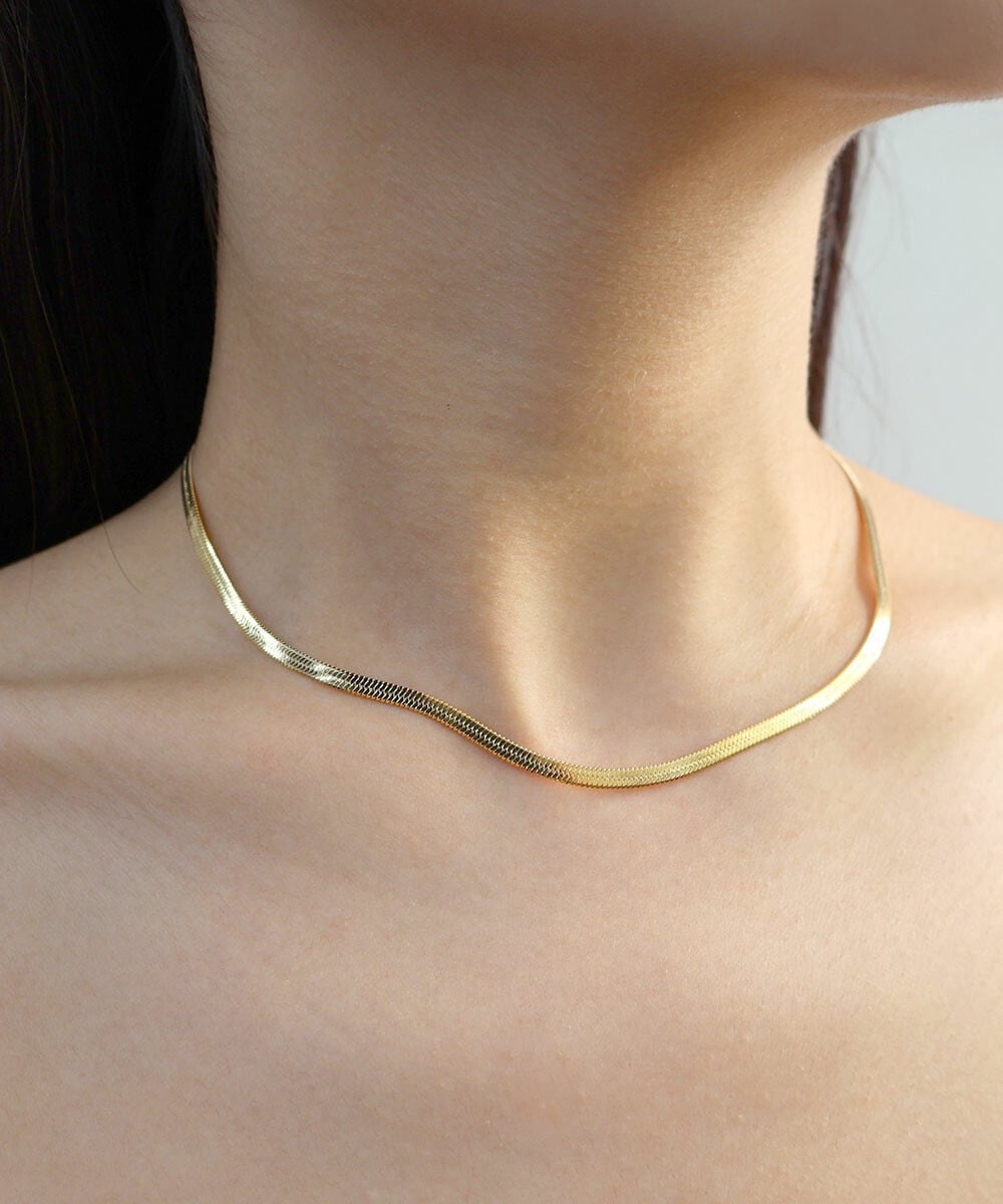 フラットでしなやかなチェーンが素肌に馴染みやすく、着け心地も抜群!