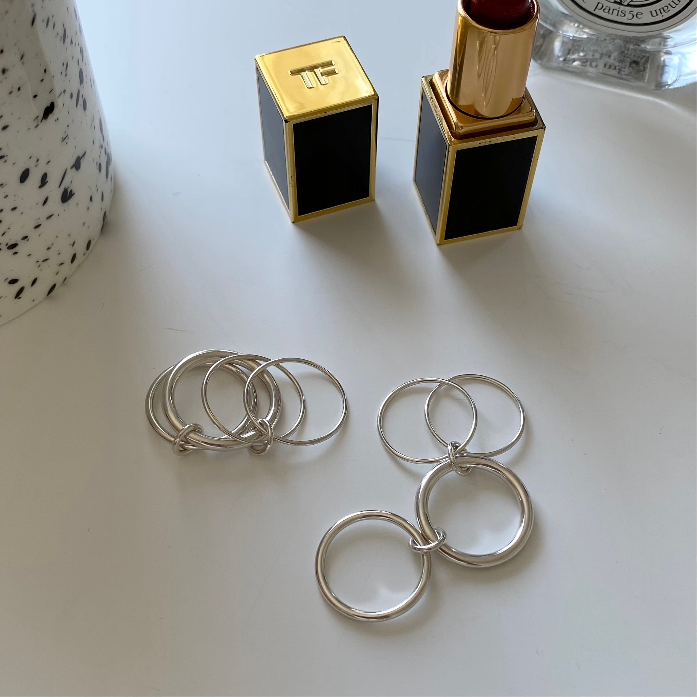 3mm.2mm.1mm幅の華奢リングが連結されたリング。 重ね付けしたようなお洒落な雰囲気漂う上品なリングとなっております。 □サイズ 6号・9号・11号 □素材 silver925