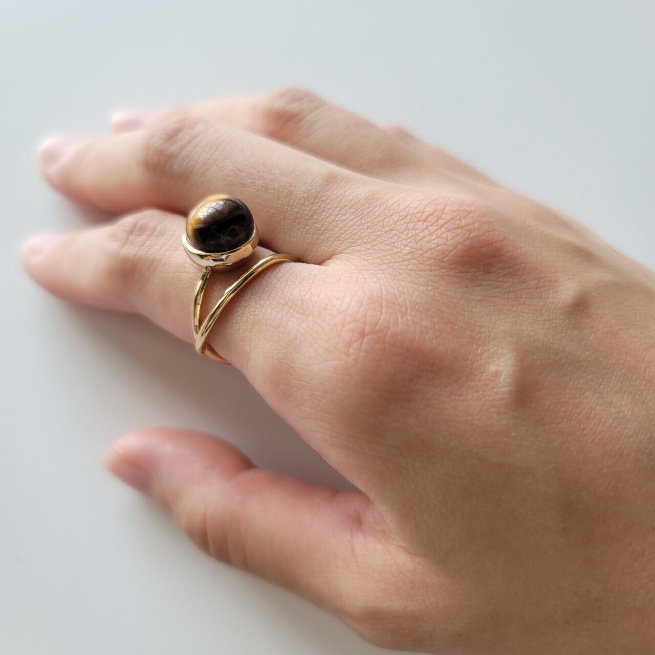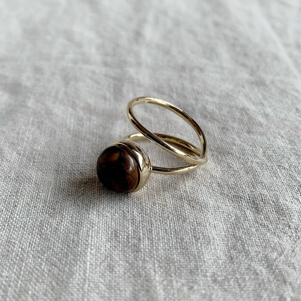 ルーズにカーブしたラインが遊び心あふれる天然石リング