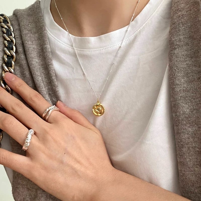 ニュアンスをつけたゴールドプレートが印象的なネックレス♡