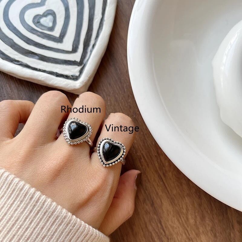 大きめのぷっくりブラックハートが存在感抜群のリングとなっております。