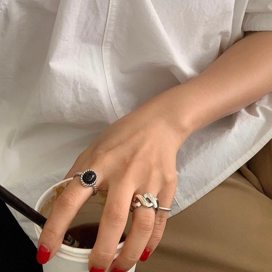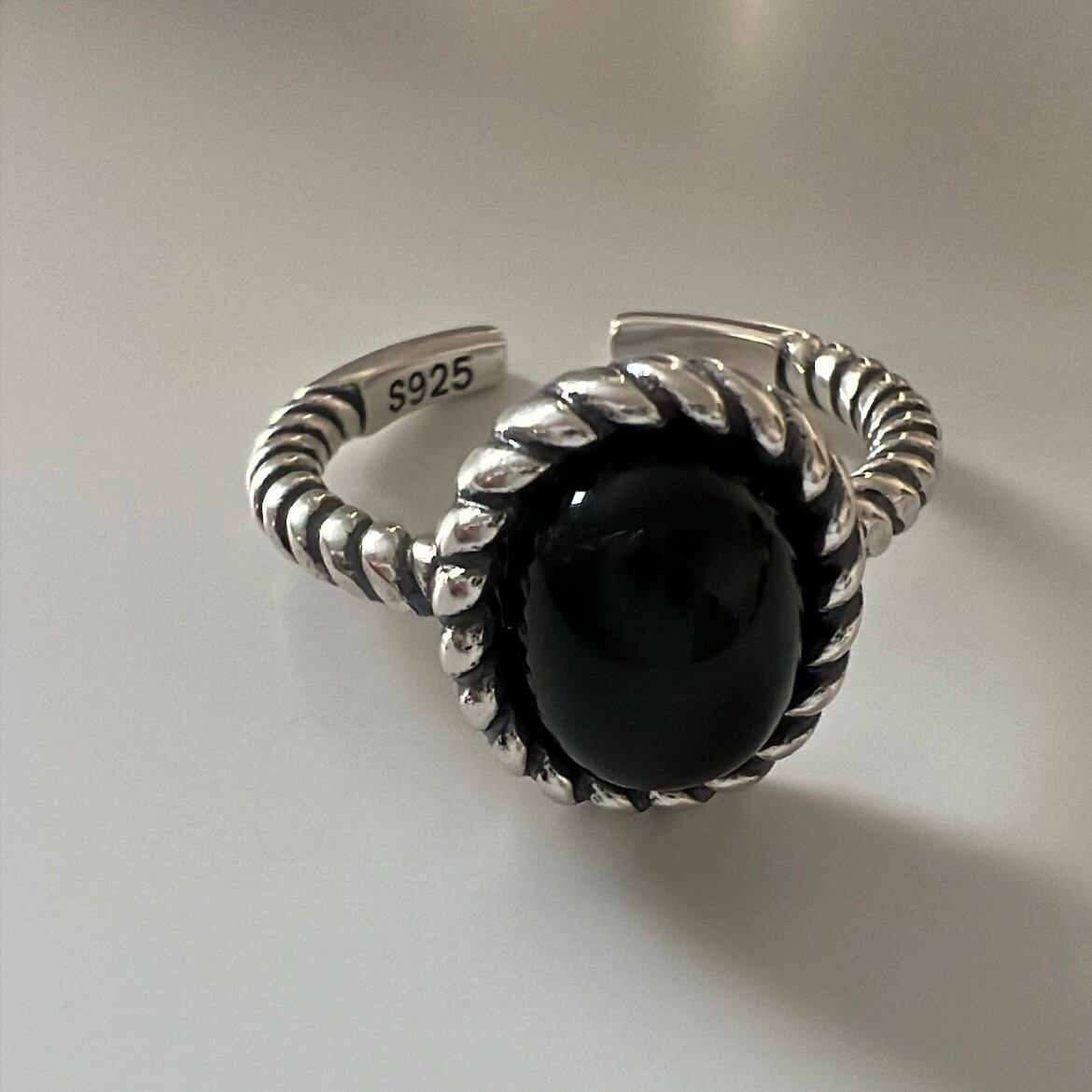 カジュアルなスタイリングも ピシッと締めてくれるオニキスリング。 燻加工を施した高級感あるツイストデザインで ワンランク上の手元コーデに◎ □サイズ 約11号〜14号(サイズ調整可能) □素材 silver925