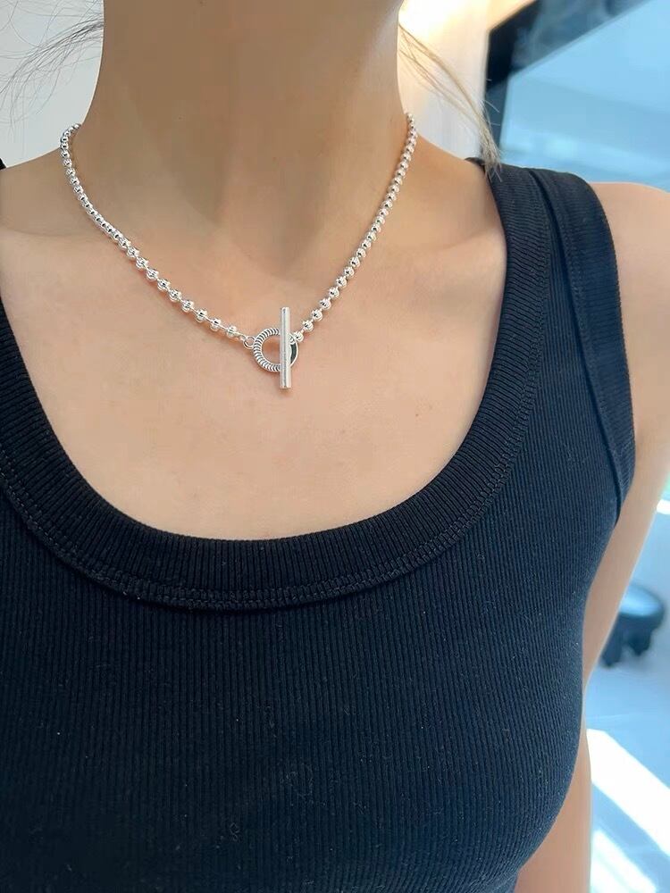 チェコビーズのようなスジ入りのボールチェーンが可愛いチョーカー。
