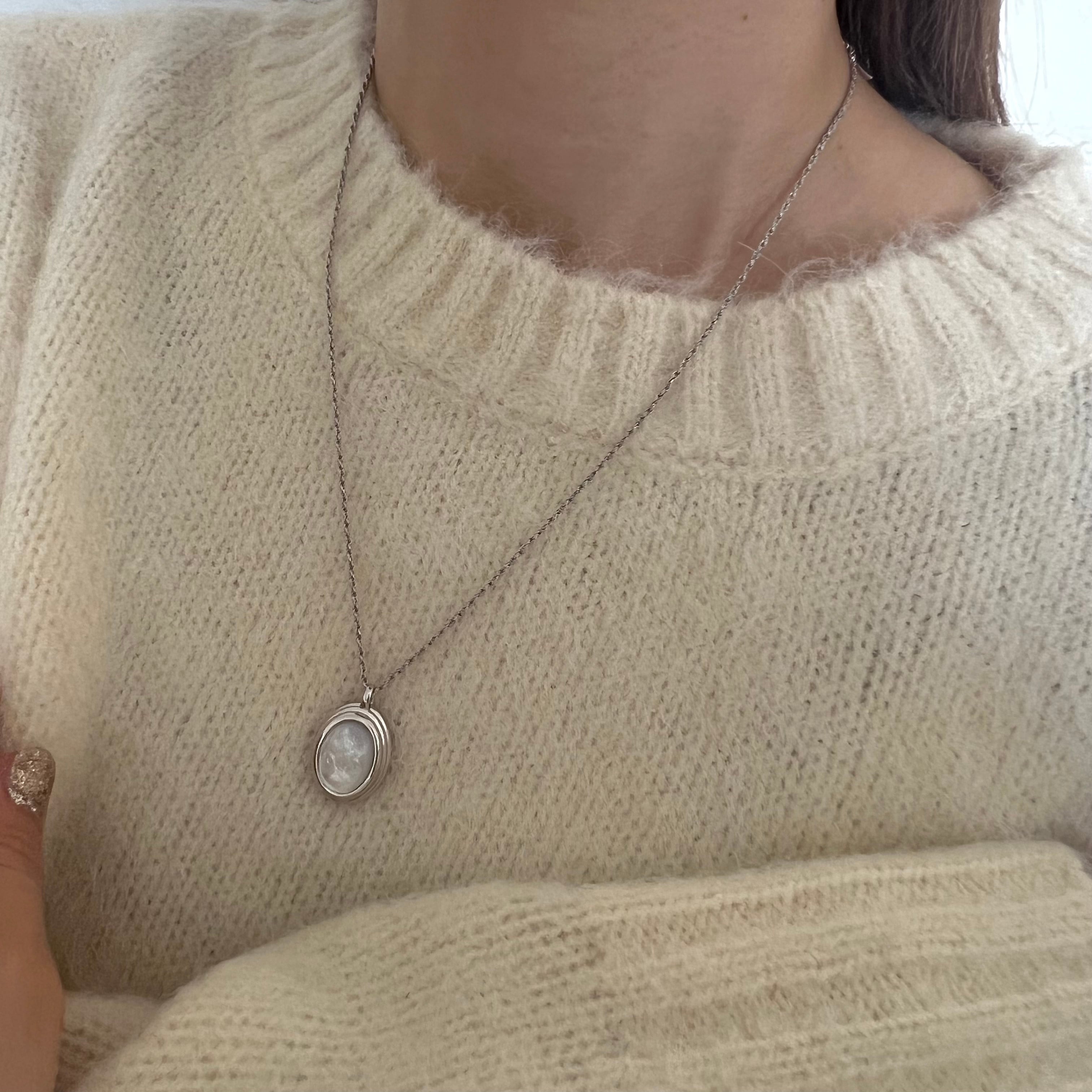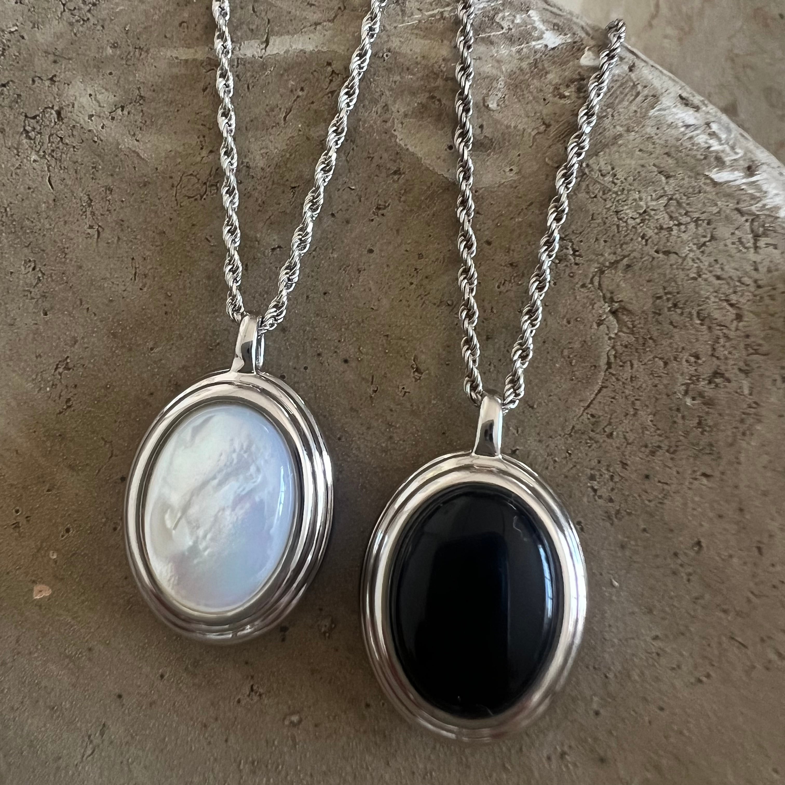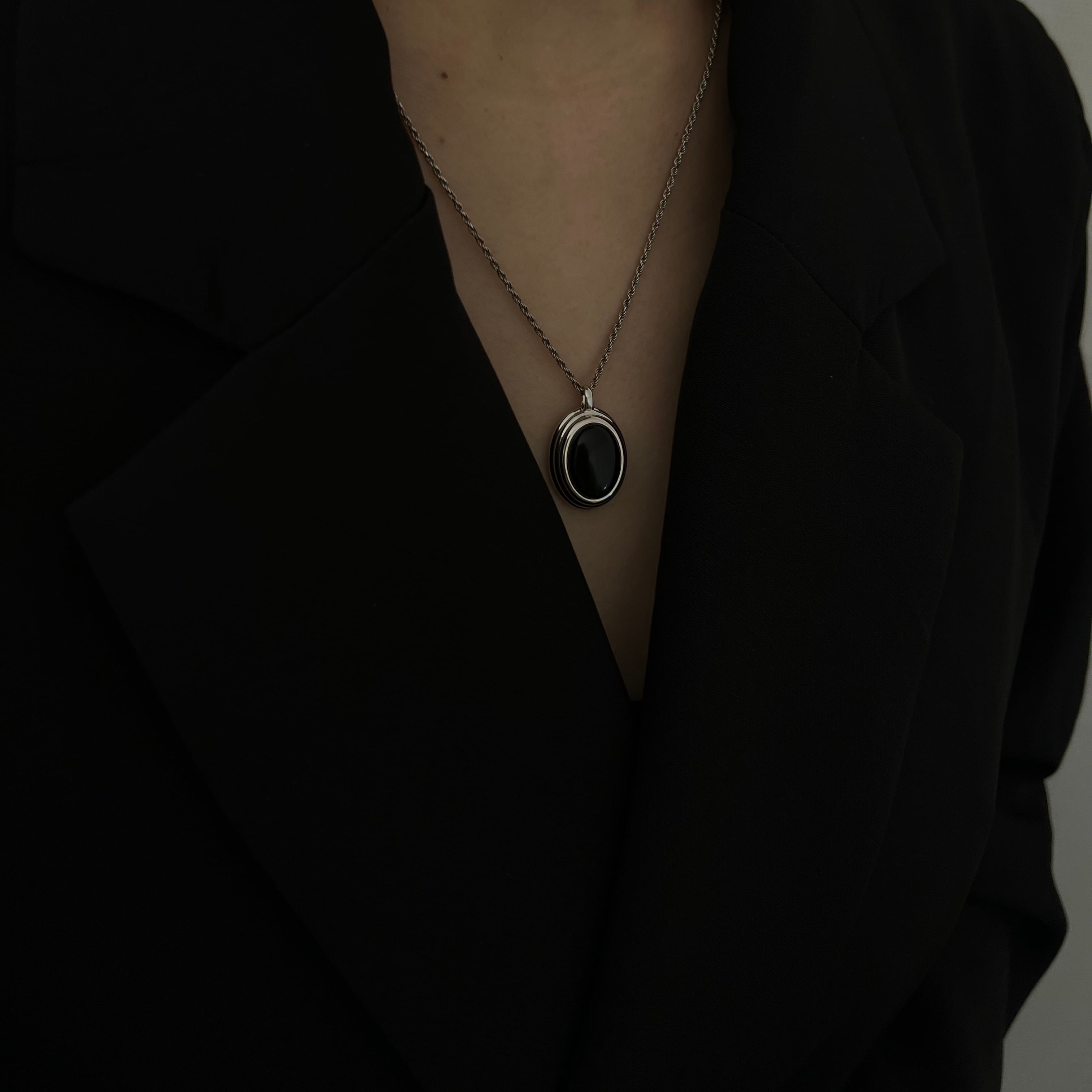 モード感漂う、大きめのオーバルストーンを使用したネックレス。